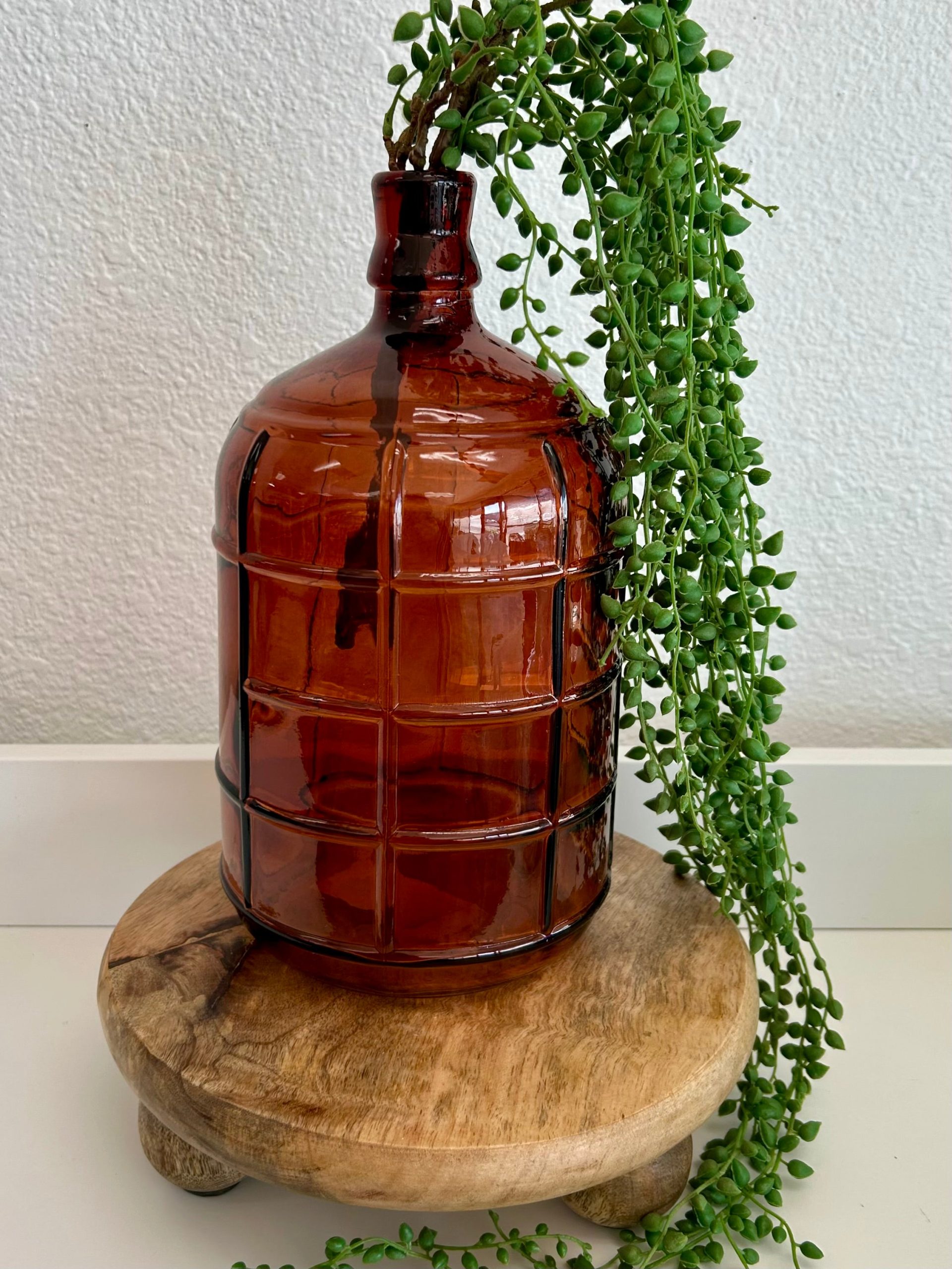 - Elevate your home decor with this vintage-inspired amber glass bottle, featuring a distinctive grid pattern that adds both texture and character.