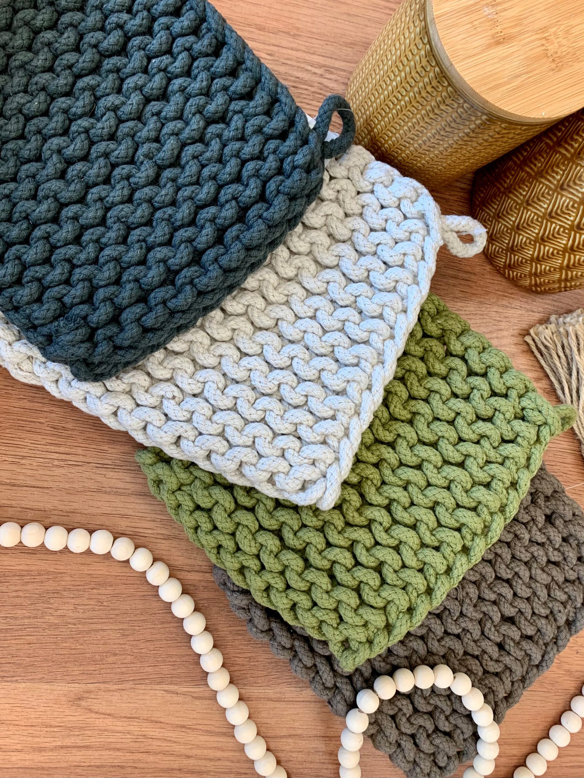 - Add these beautifully crafted pot holders to your home today for a touch of practical elegance.
