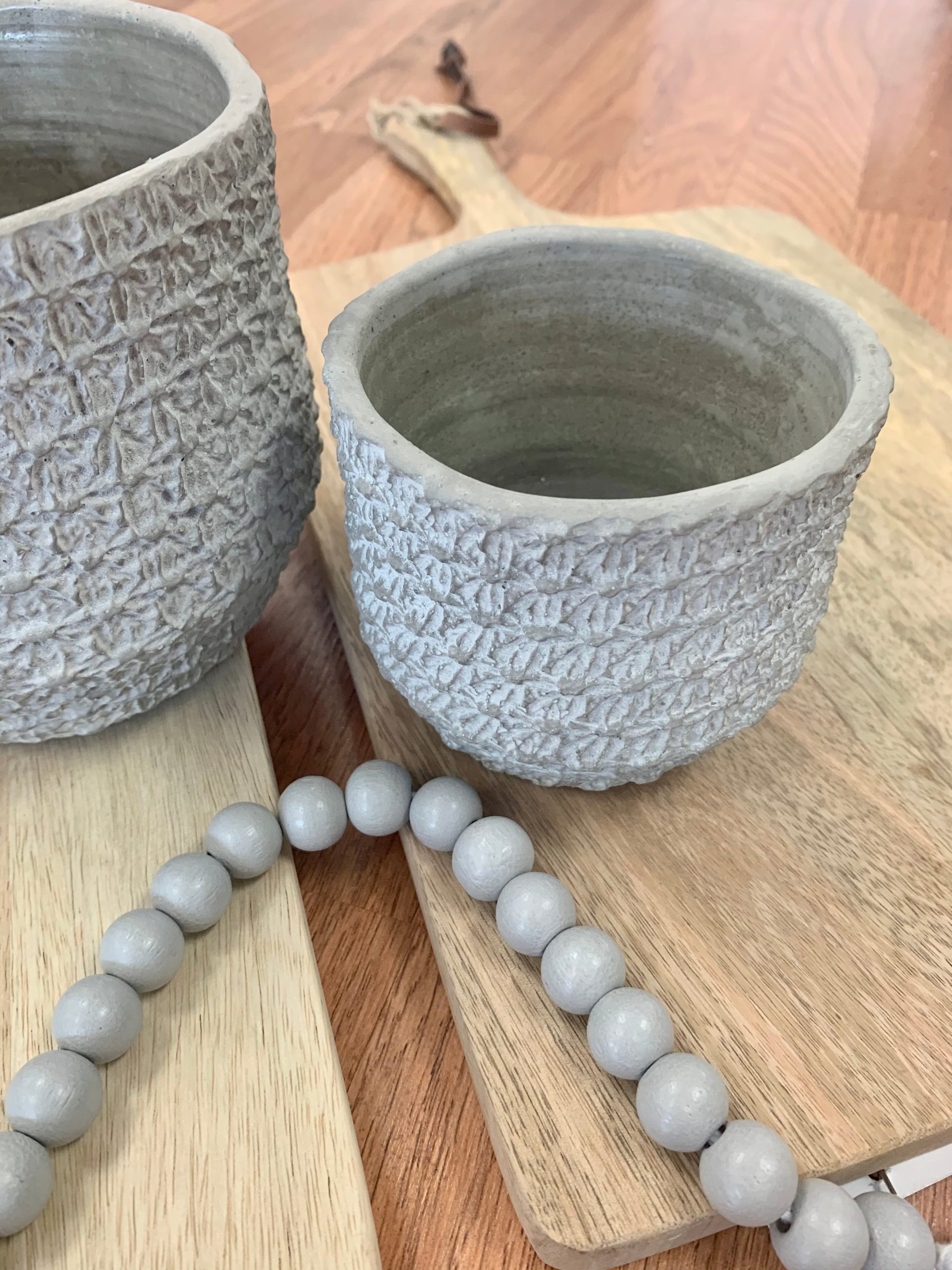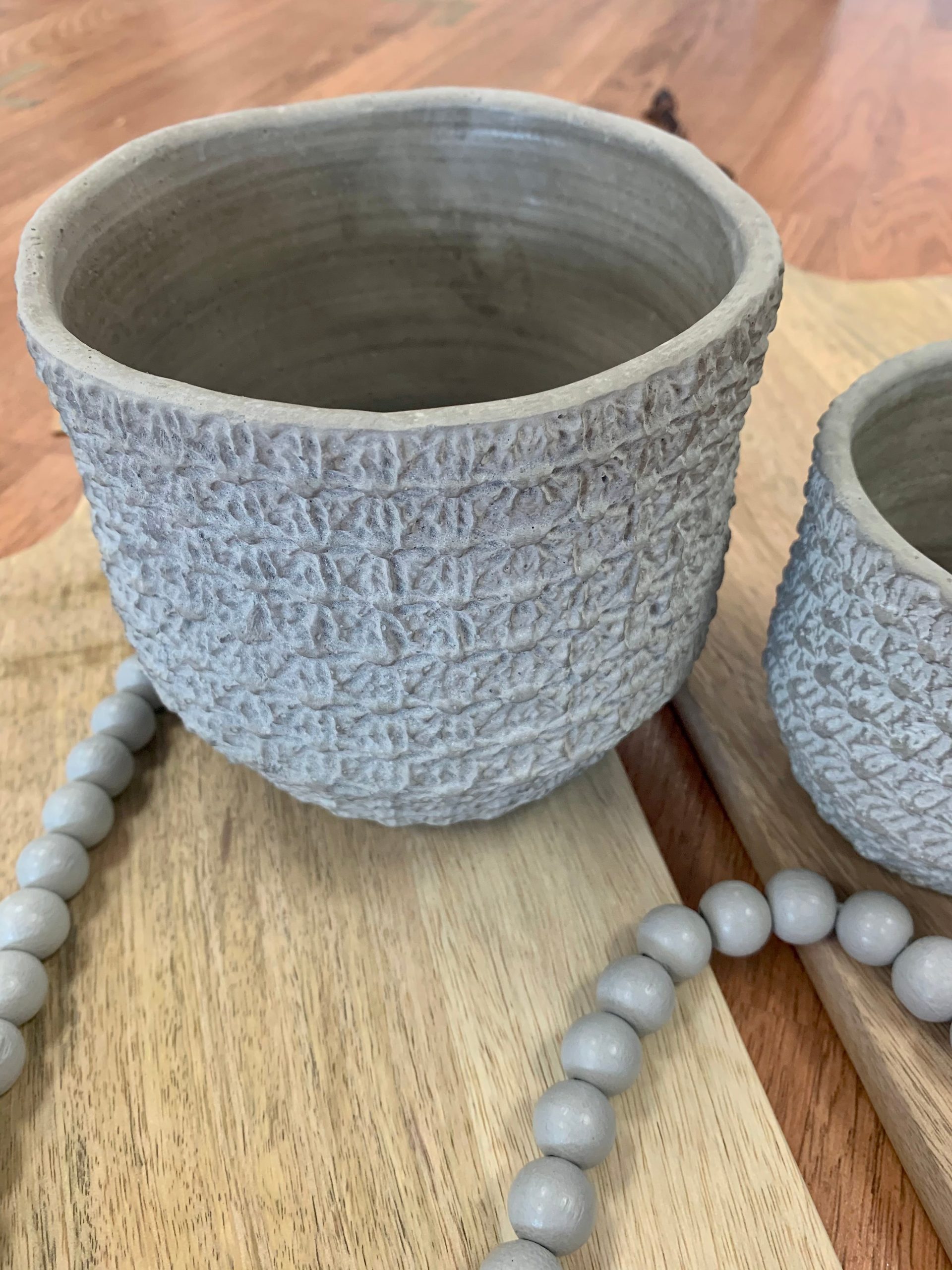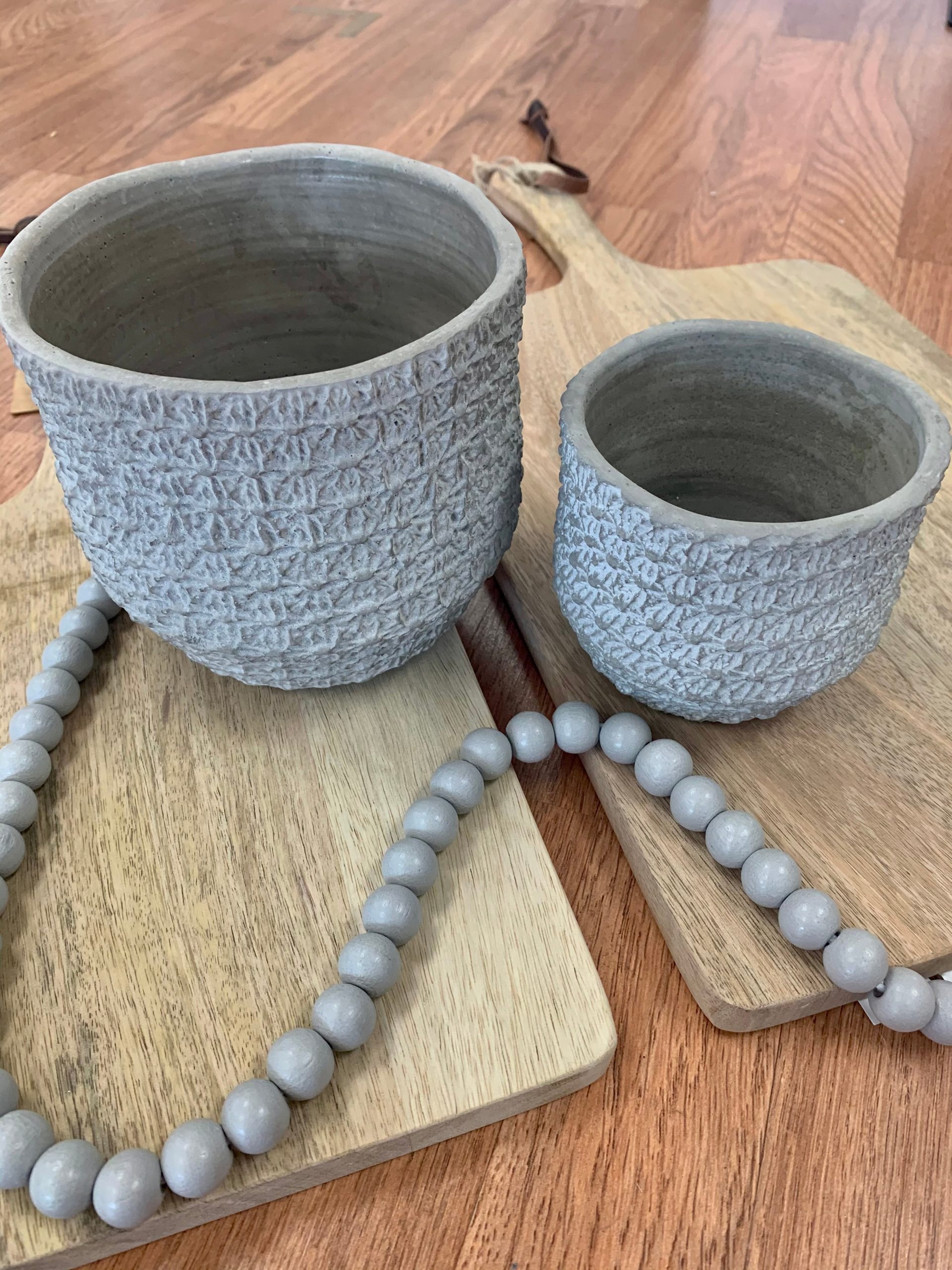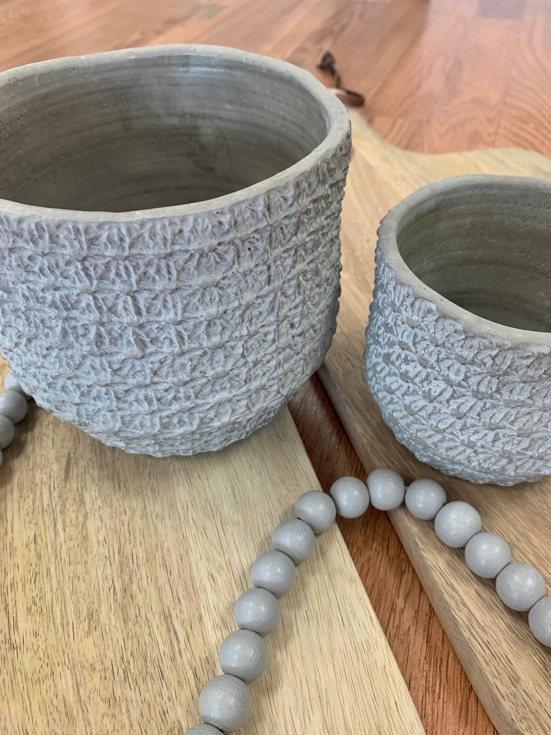This stylish cement pot features a textured design. Great for decorative plants and adding stylish touch to your home decor. With it’s neutral tones and stunning texture it can add unique style to any space!