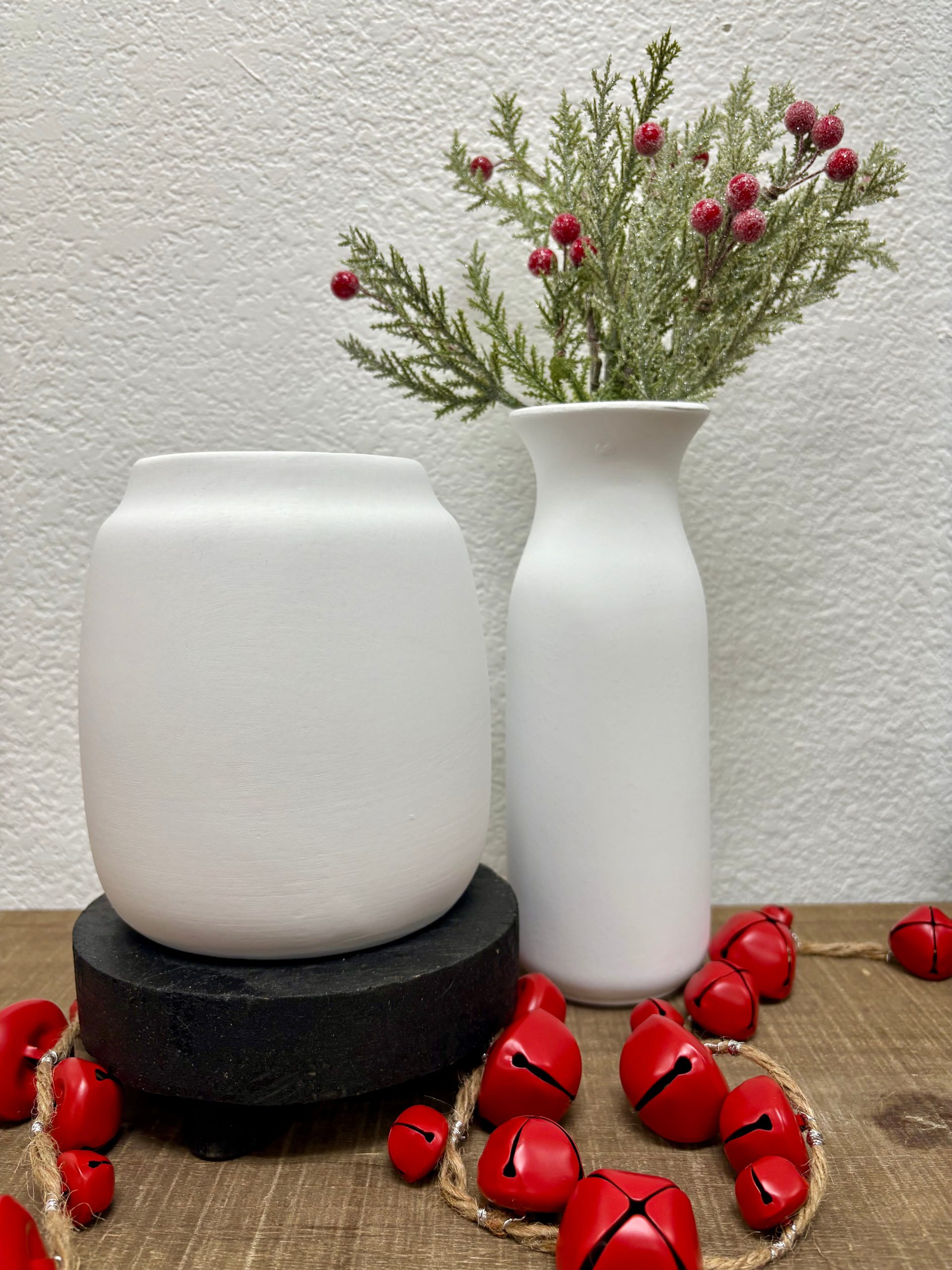 - These White Ceramic Vases feature a smooth matte finish with clean, simple lines that bring minimalist elegance to your home decor. The sturdy ceramic construction and classic silhouette create a timeless piece, while the pristine white tone adds versatility that complements any style from modern to farmhouse.